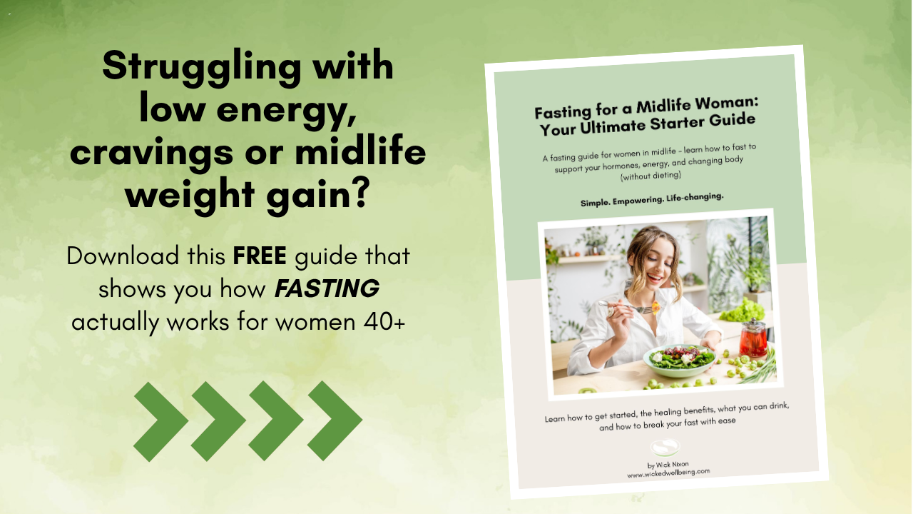 At Wicked Wellbeing, I help women 40+ navigate perimenopause and beyond with real tools, heartfelt support, and strategies that actually work – like fasting, nourishing food, and mindset shifts that fit your lifestyle.